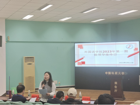 (通讯员 张睿、邹蔚鹤)2023年5月11日下午3:00,WilliamHill中文在北一楼报告厅举办2023年第一期院领导接待日,活动主题是外语学子国内外深造论坛。学院党委副书记胡文勤、副院长杨红燕、教育部出国留学培训与研究中心副主任赵英科、英语系党支部书记张地珂和本科各年级学生代表参加了本次活动。