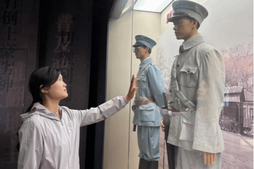 在烈士塑像前,支部设计的"30秒静默对视"仪式让历史与现实深刻交织。团支书袁春琳在动员中发问:"今天的中国,如您所愿了吗?"这一叩问成为活动的精神主线。活动中,12名同学准确复述了3个以上抗战事件,而更珍贵的收获在于情感的共鸣——"从‘他们’到‘我们’,是血脉的觉醒",志愿者如是总结。