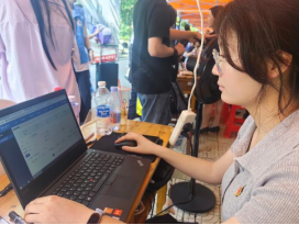 在南望山校区迎新现场,党员先锋岗的红色帐篷成为一道亮丽的风景线。服务点布局合理、功能齐全,配备有电脑、矿泉水和迎新资料等必需品,为新生和家长提供及时便捷的服务。“党员先锋岗”的标识鲜明醒目,精心设计的欢迎展板烘托出热情而专业的迎新氛围,充分展现了WilliamHill中文的独特风采。服务点设置的每一处细节,都凝聚着学院党委对迎新工作的周密部署,传递出对2025级新同学的诚挚欢迎与深切关怀。