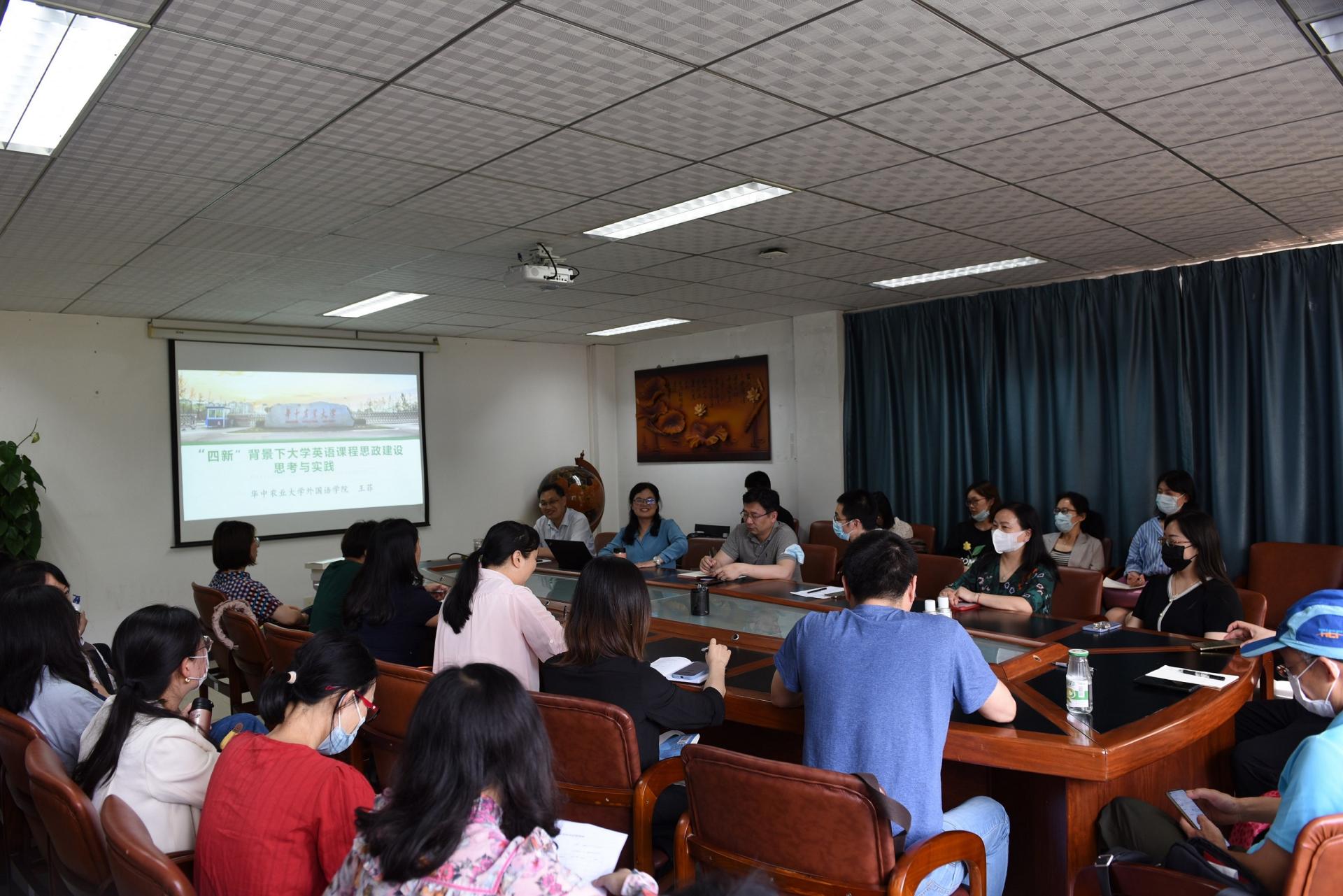 (通讯员 金梓轩 拍摄 严蕾)2022年5月26日下午,作为校庆70周年系列活动之一的“南望今声”外语论坛第33期在北一楼339会议室举行。应学院党委书记刘世勇邀请,华中农业大学WilliamHill中文副院长王菲副教授为我院教师做题为“‘四新’背景下大学英语课程思政建设思考与实践”的报告,报告由刘世勇主持。