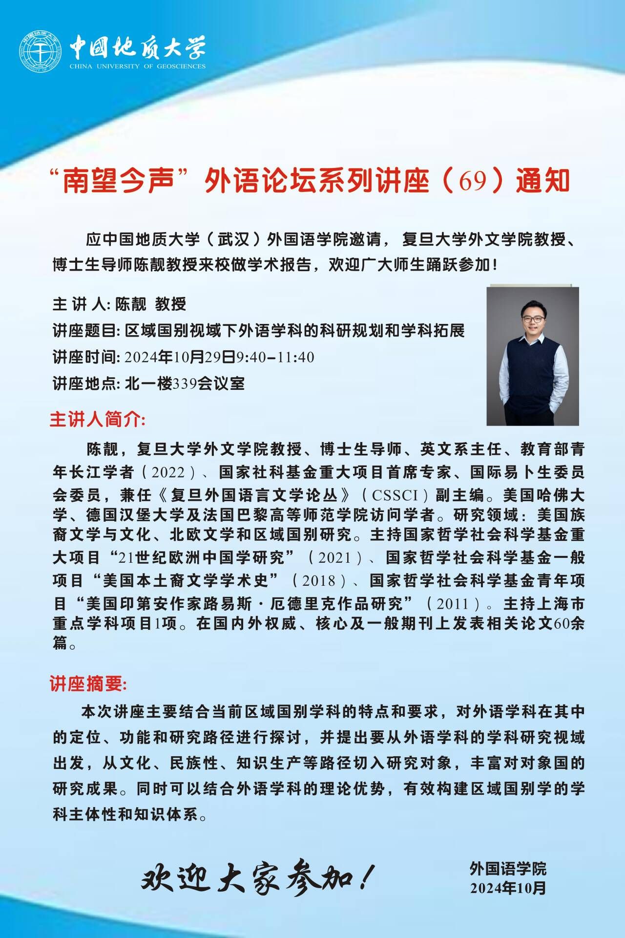 “南望今声”外语论坛系列讲座(69)通知