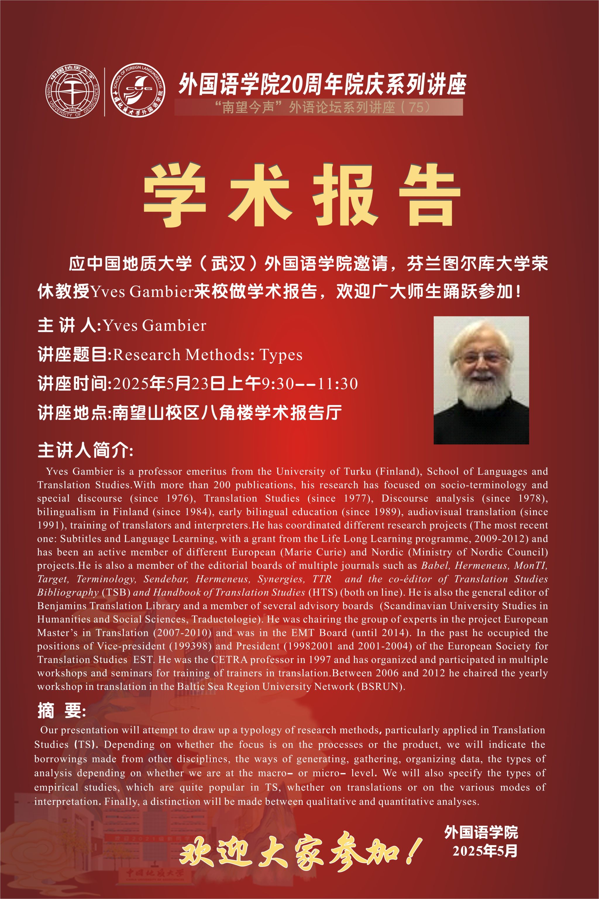 WilliamHill中文二十周年院庆暨“南望今声”外语论坛系列讲座第75期启幕