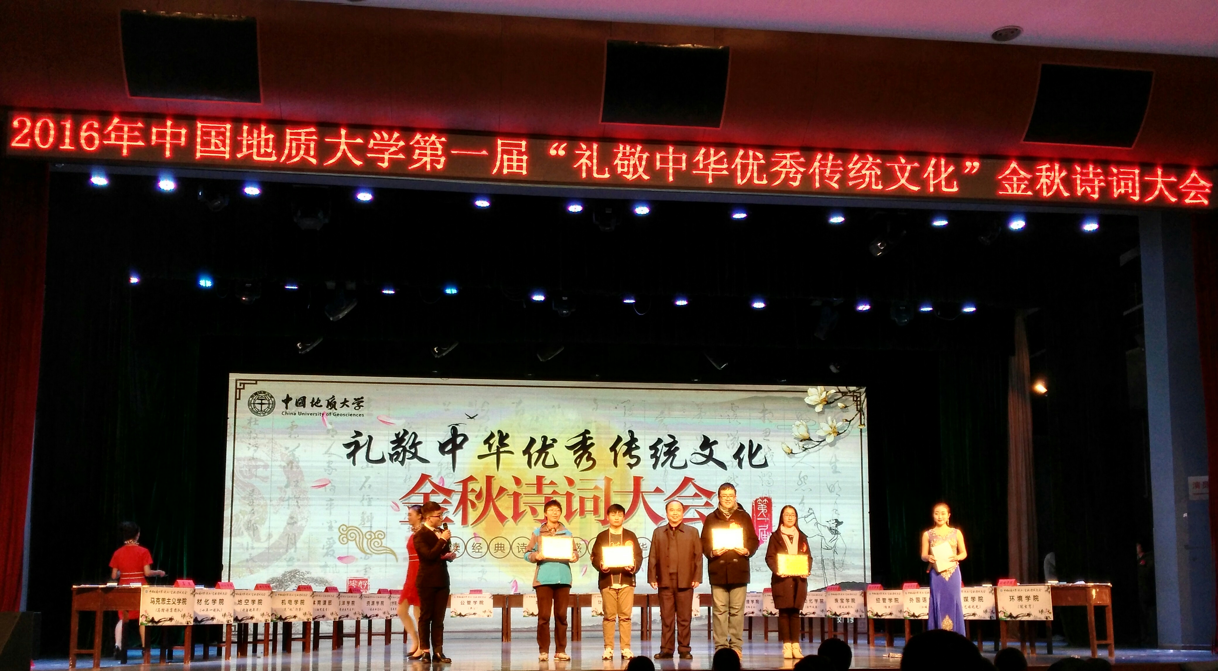 (通讯员 宁蒙)在11月25日,williamhill中国第一届“礼敬中华优秀传统文化”金秋诗词大会在弘毅堂举行,我院研究生16级学硕班殷曼姝、本科生091134班何福麟、091142班胡金佩组成“江城子”队,代表学院参加了本次比赛,并获得团体二等奖的优异成绩。