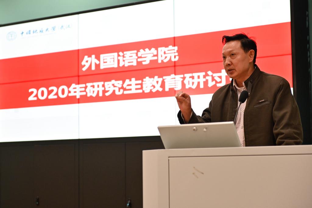 学院党政班子代表副院长刘芳以“公外研究生教学的现状与困境”为题,阐述了非英语专业研究生教学现状与发展瓶颈,希望学校和学院能够给予大学英语部进人指标,建立专门的研究生教研室,将公外研究生教学课时计入聘期考核等。