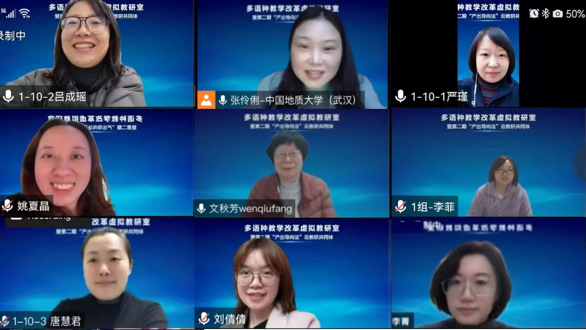 (通讯员 李菁、严瑾、刘倩倩)3月26日,由北京外国语大学中国外语与教育研究中心和外语教学与研究出版社联合举办的“多语种教学改革虚拟教研室暨第二期‘产出导向法’(Production-oriented Approach,简称POA)云教研共同体”正式启动。中国外语与教育研究中心主任王文斌教授和外语教学与研究出版社常小玲副总编辑出席启动仪式并致辞。本期活动由北京外国语大学文秋芳教授总负责,我院张伶俐教授、李菲副教授和国际教育学院李菁老师为促研员团队成员。我院严瑾、吕成瑶、唐慧君、姚夏晶和刘倩倩五位老师,以及其他来自全国130所高校的400余名教师入选第二批云教研共同体,开启了为期两年的POA云教研共同体学习之旅。