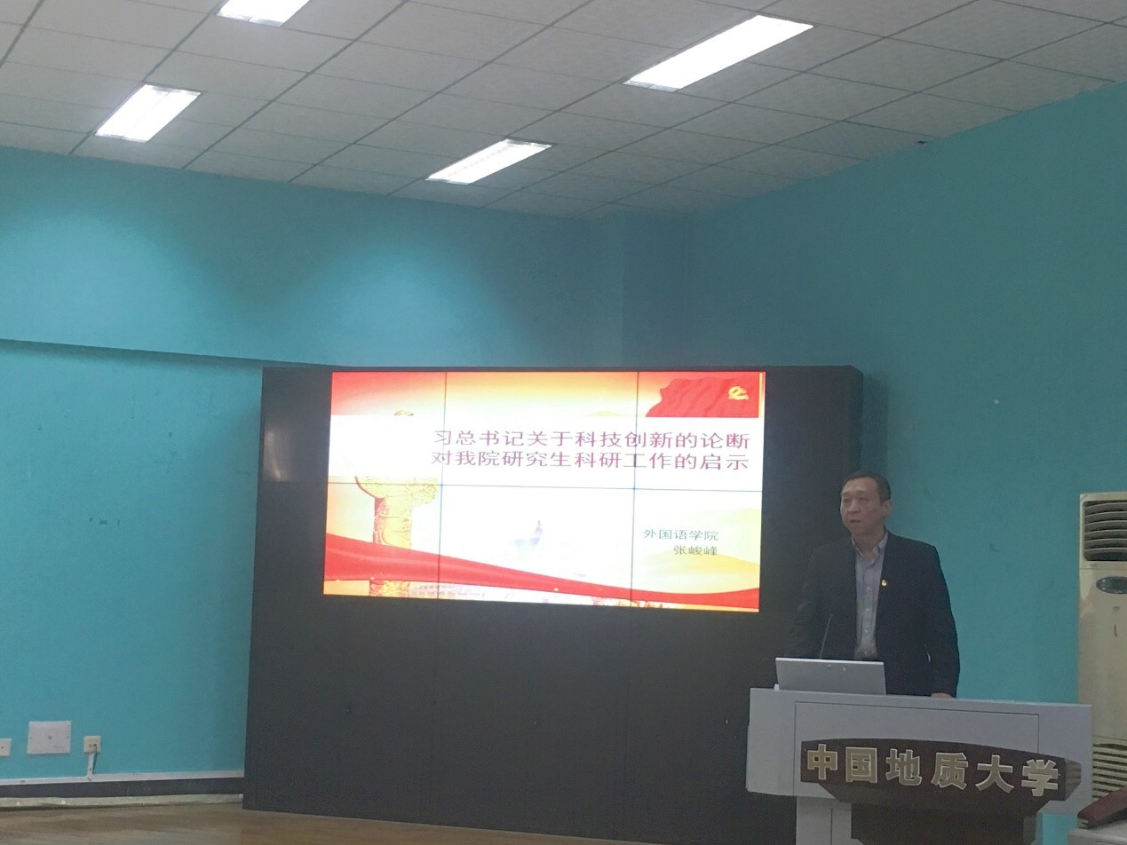 张峻峰院长以“习总书记关于科技创新的论断对我院研究生科研工作的启示”为题展开讲解。首先,张院长以国内最新科技发展状况导入,对习总书记关于科技创新的论述进行阐释。随后,基于习总书记关于科技创新的论述,他结合了学院科研情况,分析了学院研究生的科研方法和路径。他认为,我院研究生在勤读、勤思、勤练的基础上应牢固树立跟党走的理想信念,结合国家发展需要和学校特色做新时代的科研开拓者。最后,他以“持之以恒,必有所成”为寄语,希望各位在科研道路上不急不躁,勇于尝试,做出成绩。