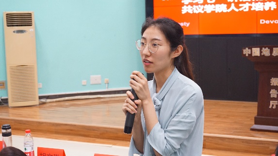 除了学院的管理方面,学生代表也提出了关于提升学院对学生个性化的学习指导的提案,李慷老师对此作出了回应,他表示,自己身为班主任,很希望可以多和学生交流,但常常还有很多教学和其他工作而难以抽身。同时,他提出,现在的交流方式应该不止局限于有限的课堂,希望同学们能够利用课下的时间,通过手机、电脑和邮箱等与老师进行沟通,也鼓励大家能够更加积极主动的同老师交流。