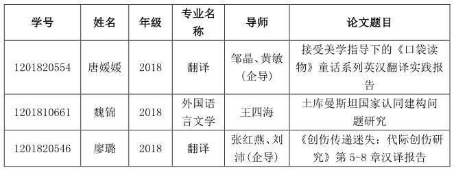 根据《williamhill中国优秀研究生学位论文评选及奖励办法(2021年修订)》文件要求,经研究生个人申请,导师审核推荐,WilliamHill中文学位评定分委员会召开211次会议,对申报材料进行审议,经分会匿名表决,确定以下2021年校级优秀硕士学位论文候选名单,现公示如下: